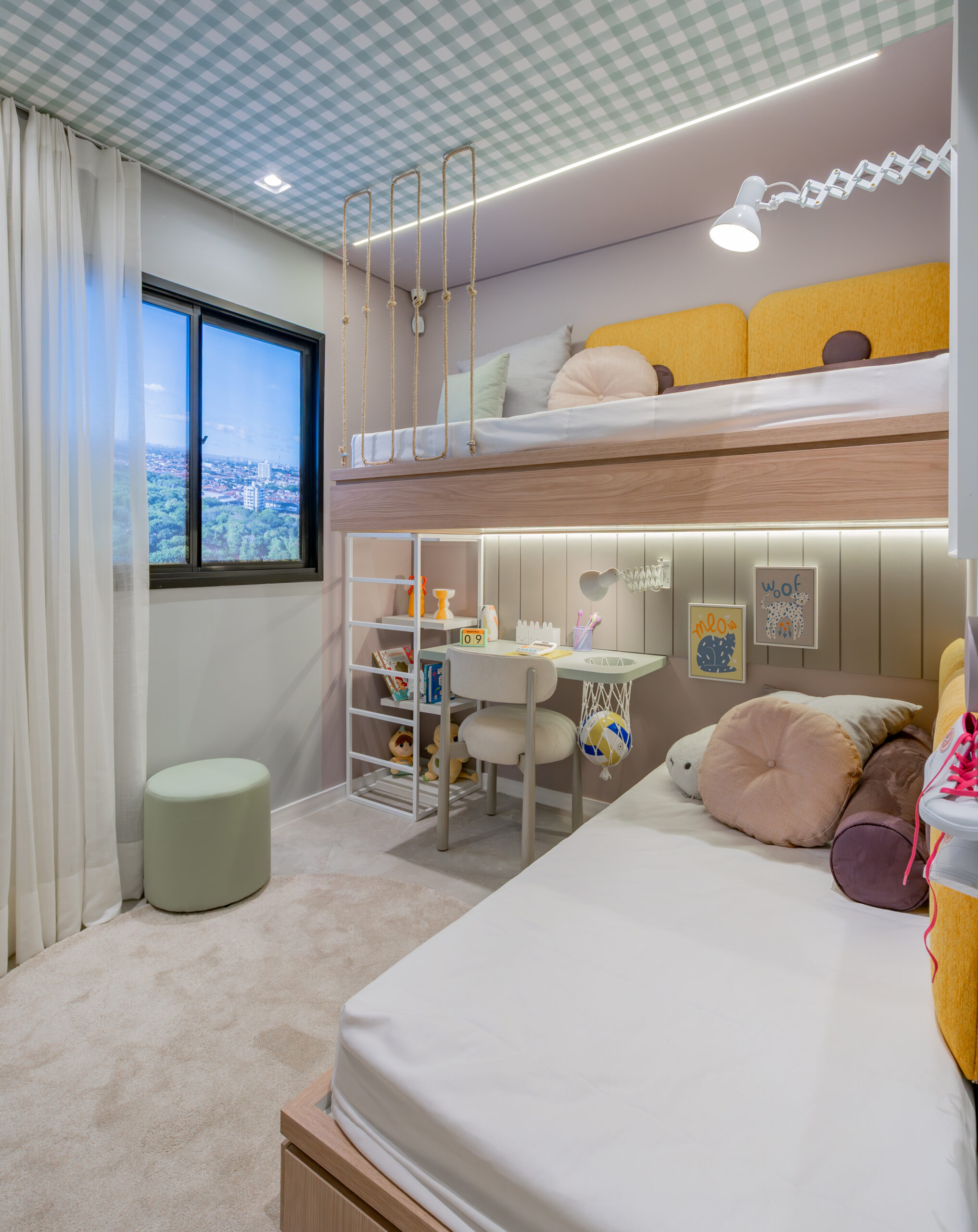 O lazer é um capítulo à parte: piscina, deck com churrasqueira, espaço gourmet, lounge de convivência, academia equipada, brinquedoteca, playground, espaço piquenique, minicampo, pet place, bicicletário, delivery room e minimarket.