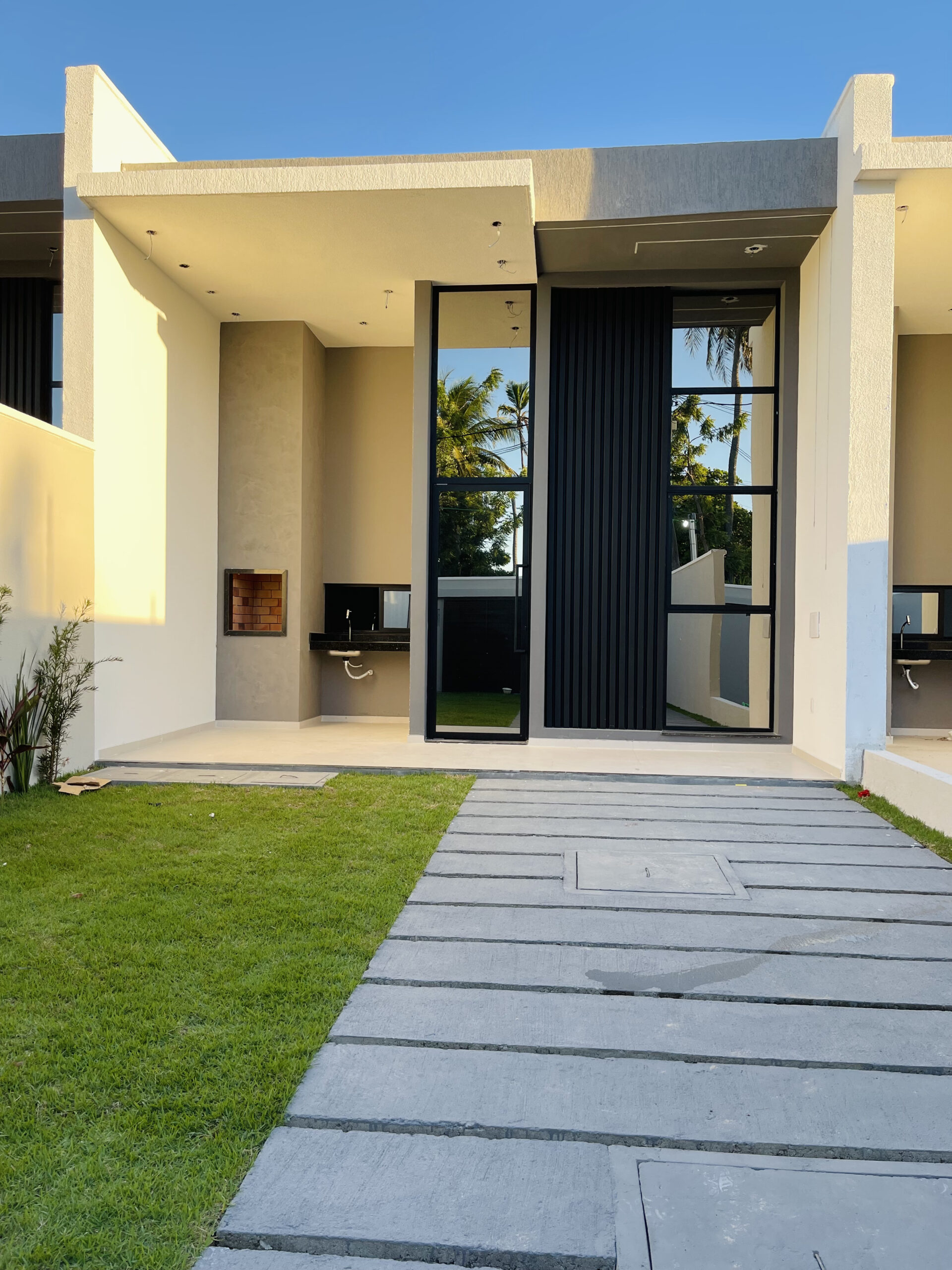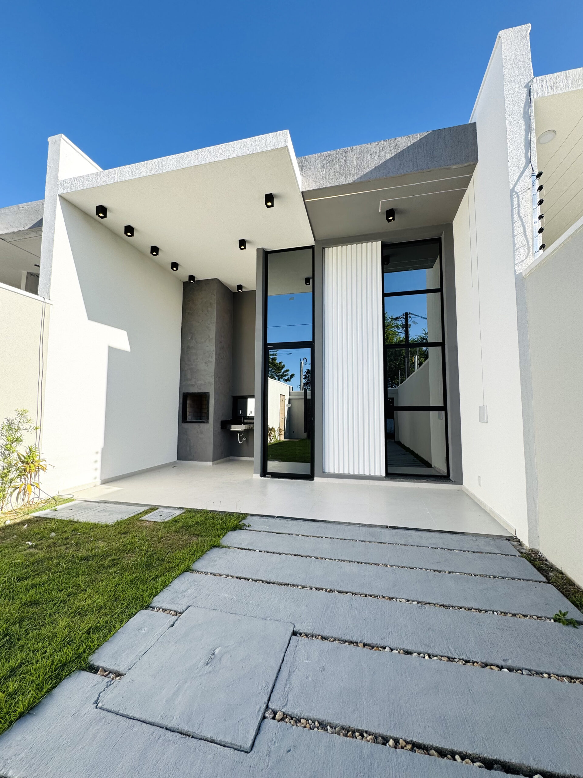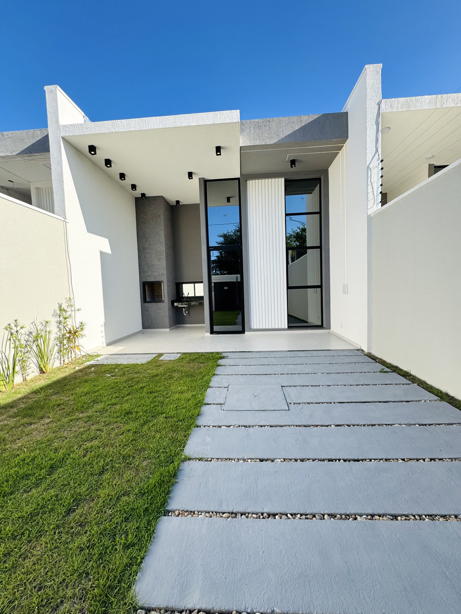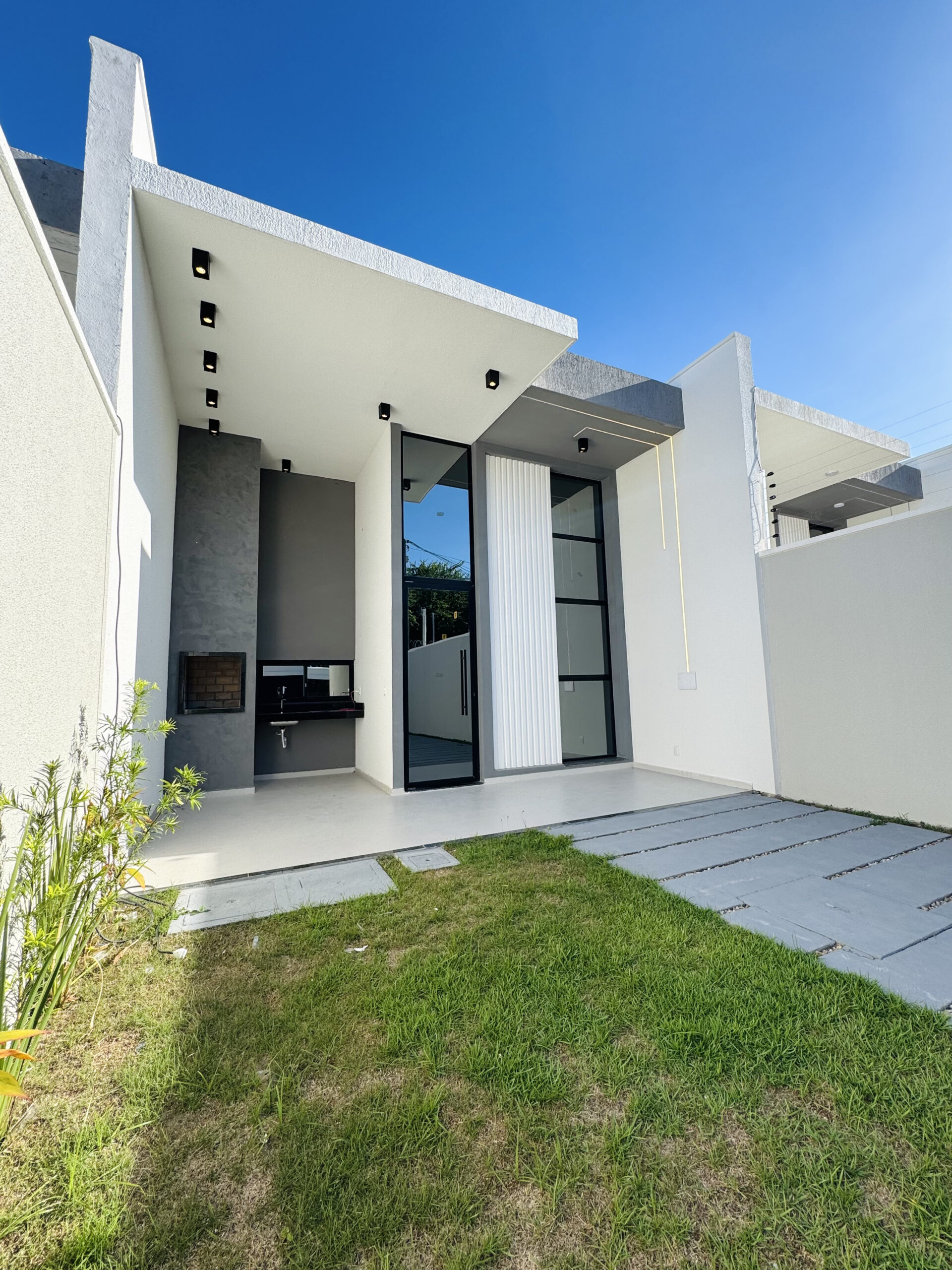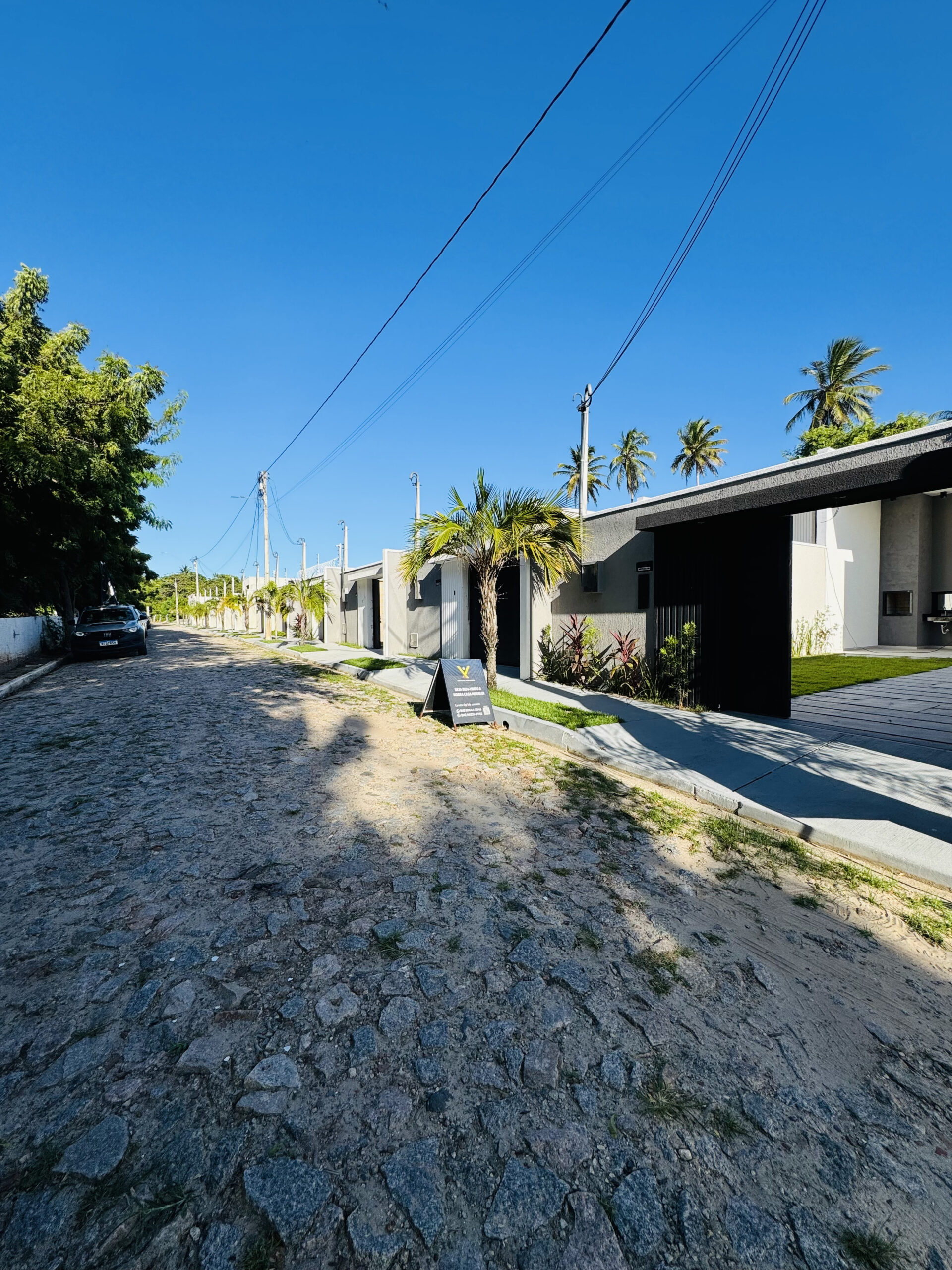 Residencial exclusivo com 18 casas planas de alto padrão, com 3 suítes (sendo uma reversível), sala integrada à cozinha, acabamento de primeira e pé-direito elevado. Terrenos a partir de 198m² e área construída a partir de 115m². Localizado no bairro Precabura, em Eusébio/CE, o condomínio oferece duas opções de planta: com ou sem varanda na suíte master, sem alteração de metragem.